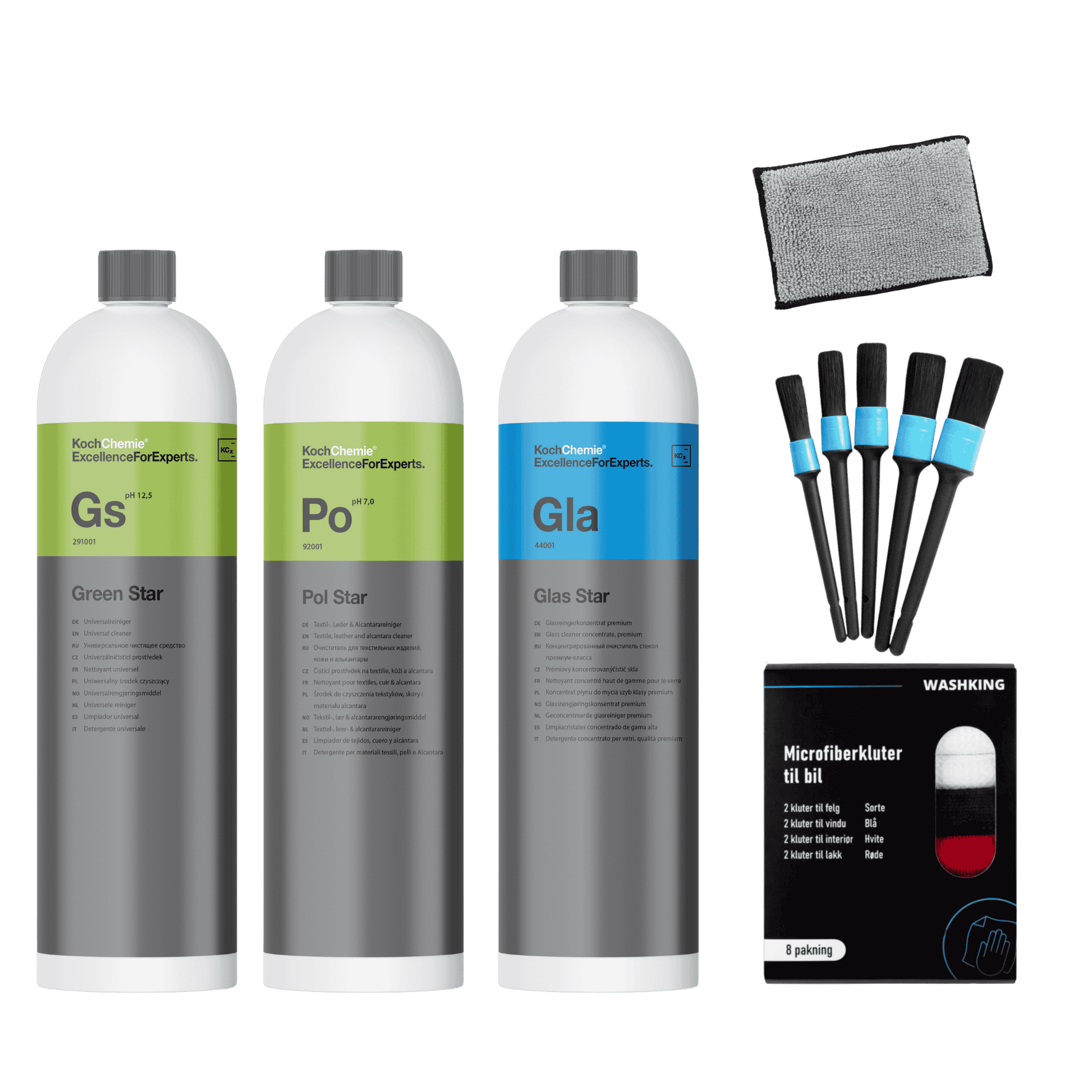 Høstklar Interiørpakken er satt sammen for å gi deg alt du trenger for en grundig og profesjonell rengjøring av bilens interiør. Med effektive produkter fra Koch Chemie kombinert med kvalitetsutstyr fra WashKing får du en komplett pakke som gjør det enkelt å holde bilen ren, frisk og innbydende gjennom høstsesongen.
