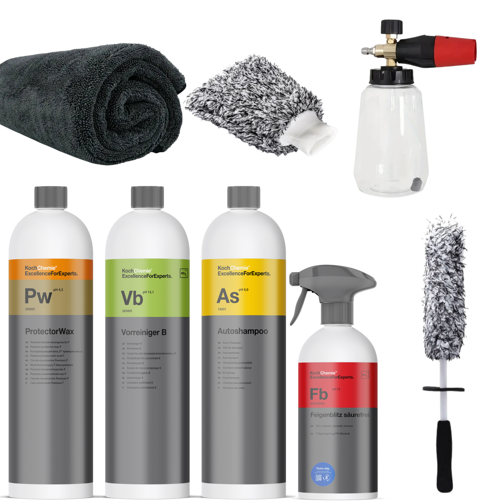 Med denne pakken er du klar for en komplett og sikker vask – fra skitt til glans, med produkter i topp kvalitet og utstyr som gir profesjonell finish.