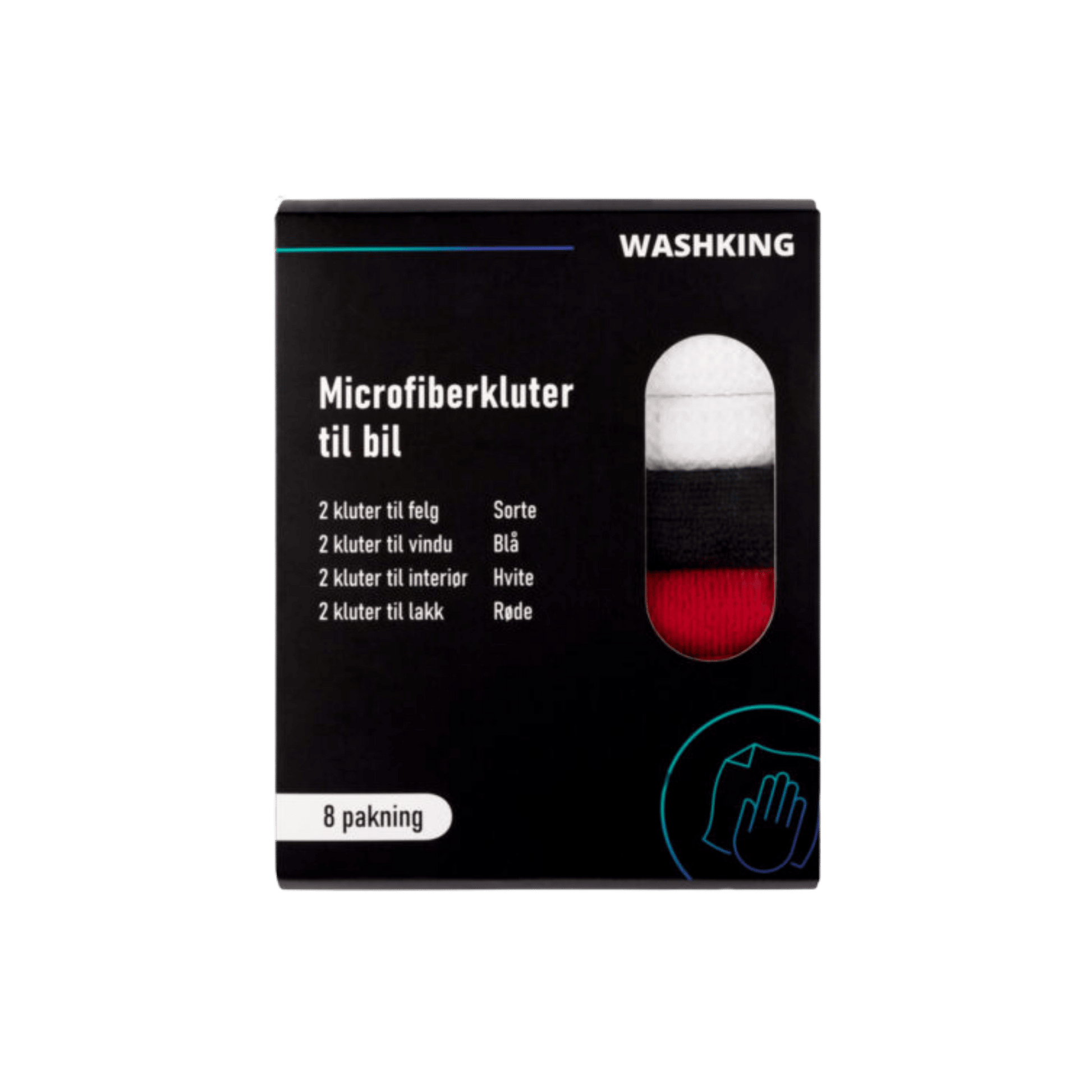 WashKing Microfiberboks 8-pk er den perfekte klutpakken for alle behov — fire ulike typer mikrofiberkluter samlet i én boks. Enten det er glass, interiør, polering eller dekk: med disse klutene får du godt verktøy for alle overflater.