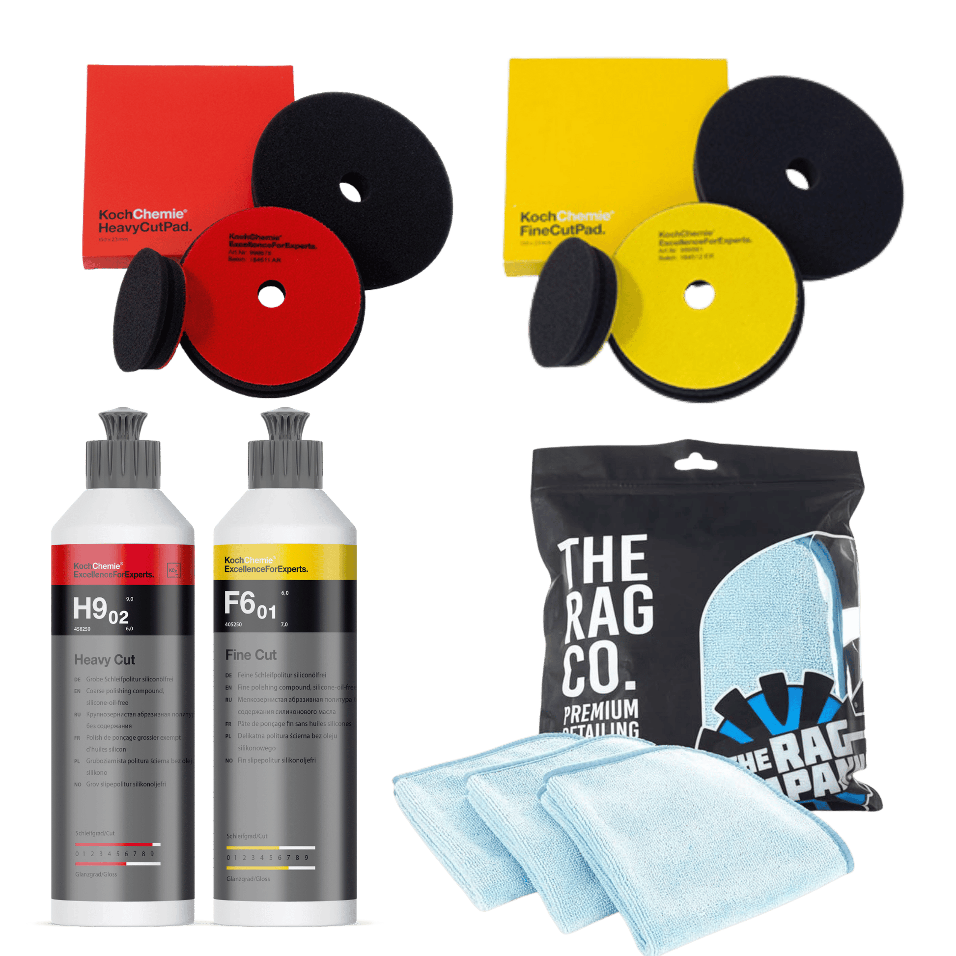 Poleringspakke B er satt sammen for deg som vil oppnå et profesjonelt resultat med grundig lakkkorrigering i to steg. Denne pakken kombinerer Koch Chemie sine mest populære poleringsmidler og pads med høykvalitets mikrofiberkluter – alt du trenger for å fjerne dype riper, forbedre glans og gi lakken et perfekt speilbilde.